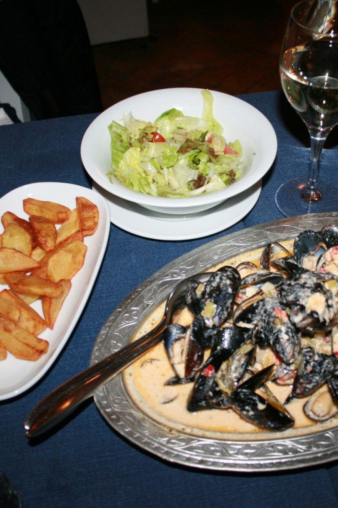 Ons etentje in ‘de Bootsman’ was georganiseerd door Bas Jansen van de Nederlandse Vereniging Istanbul (NVI). Mosselen als hoofdgerecht! Als Zeeuw en als liefhebber van alle schaaldieren kun je mij midden in de nacht wakker maken voor mosselen. Gekookt, gebakken of gevuld met pittig gekruide rijst. Uiteraard hadden de chef-koks uit Istanbul en Ayvalık niet de beschikking over Zeeuwse mosselen. En ‘naturel’ – met ui en selderij – waren ze ook niet. Maar de mosselen uit Sarıyer smaakten heerlijk. Kleiner en wat anders van textuur, maar mooi opgediend en in een verrukkelijke romige saus met gesnipperde rode paprika. Ik heb mijn vingers erbij afgelikt. Over de erbij geserveerde papat – lekker dik en zelf gesneden – waren de Nederlanders en Turkse Nederlanders ook enthousiast.
