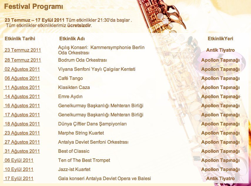 Eerst werden er twee korte toespraken gehouden door de festival directeur Remzi Buharalı en Mevlut Çavuşoğlu van de provincie Antalya. Tijdens dit concert werd er vooral klassieke muziek ter gehore gebracht.