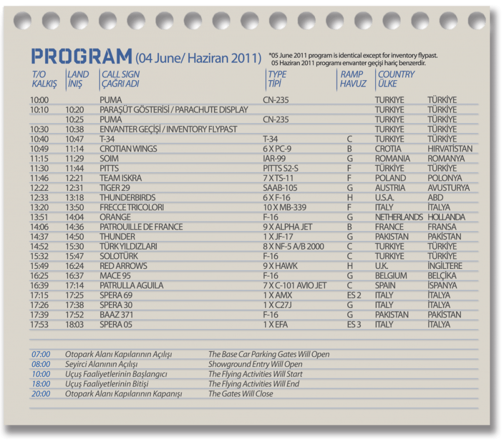 Op 4 en 5 juni 2011 viert de Turkish Airforce haar 100-jarige bestaan met een grote Air Show in Izmir. Turkije was een van de eerste landen ter wereld met een eigen luchtmacht en telt momenteel meer dan 1050 vliegtuigen (april 2011). Het zal een show worden om niet te missen!
