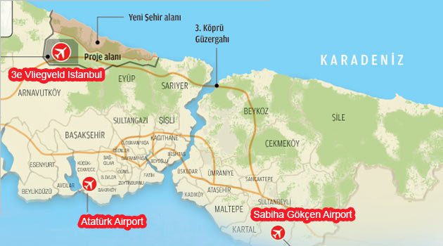 Nadat er eerder al plannen naar buiten kwamen voor een mega nieuwbouw stad voor meer dan 1 miljoen inwoners in het Europese gedeelte van Istanbul bij de Zwarte Zee, worden de plannen voor het derde vliegveld in de miljoenenstad nu ook steeds duidelijker.
